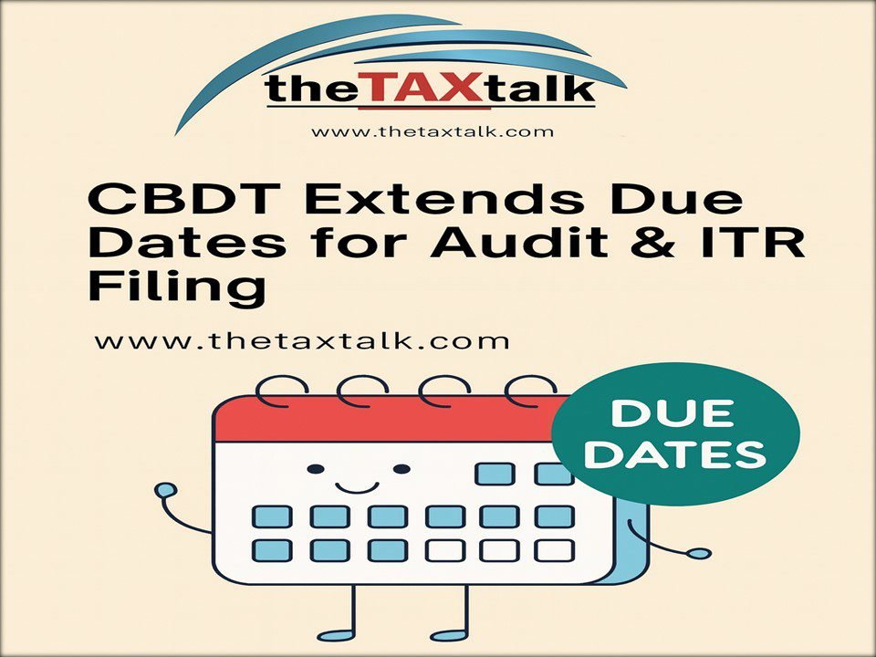 CBDT has officially extended key due dates for Assessment Year 2025-26 under the Income-tax Act, 1961: