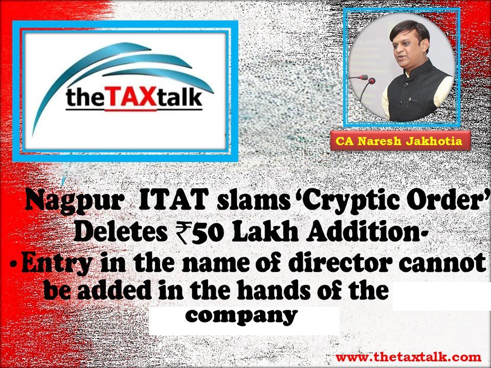 Nagpur ITAT slams ‘Cryptic Order,’ Deletes ₹50 Lakh Addition- Entry in the name of director cannot be added in the hands of the company