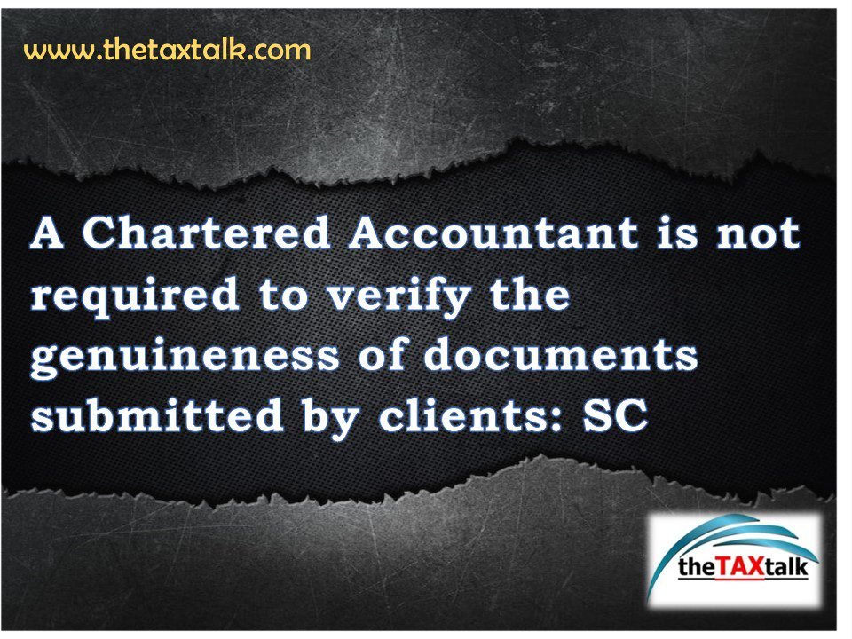 A Chartered Accountant is not required to verify the genuineness of documents submitted by clients: SC