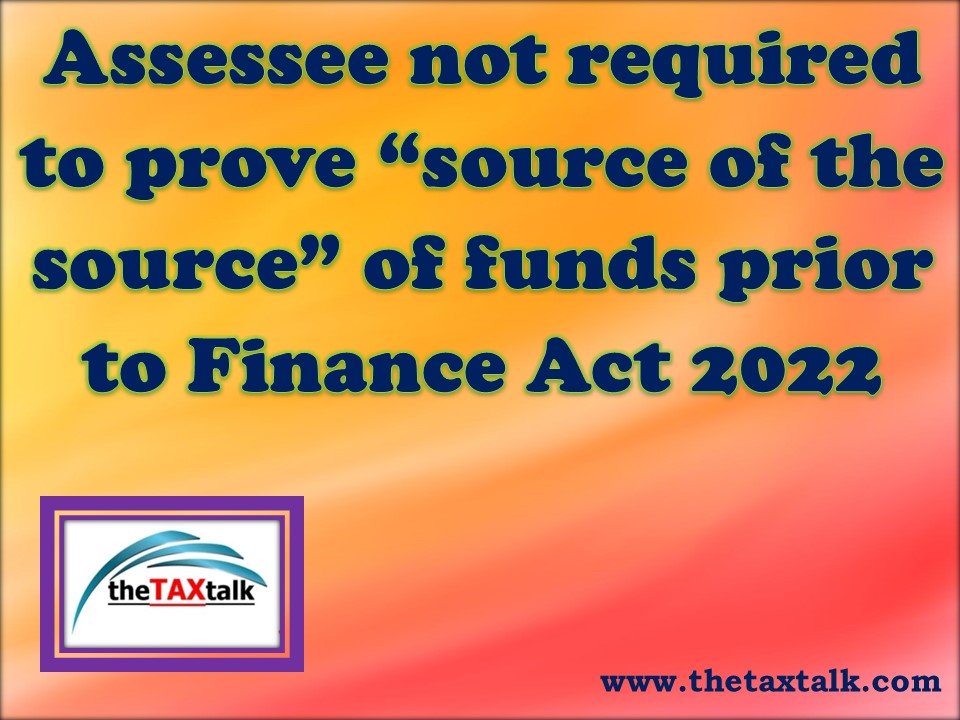 Assessee not required to prove “source of the source” of funds prior to Finance Act 2022
