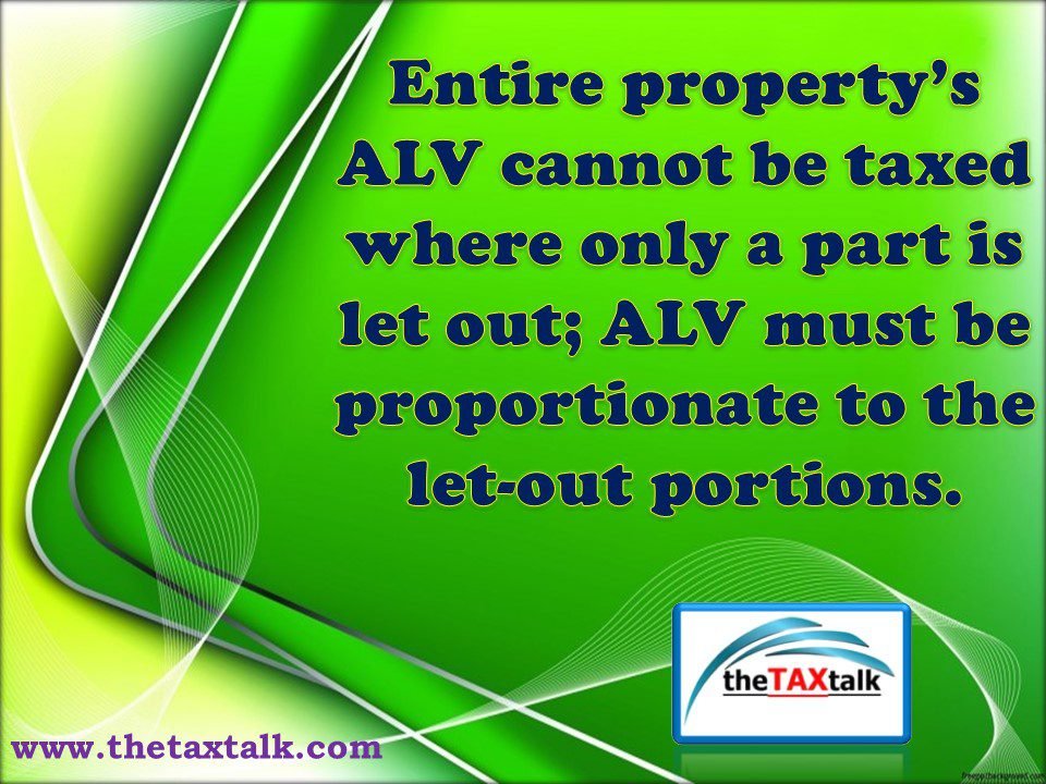 • The entire property’s ALV cannot be taxed where only a part is let out; ALV must be proportionate to the let-out portions.