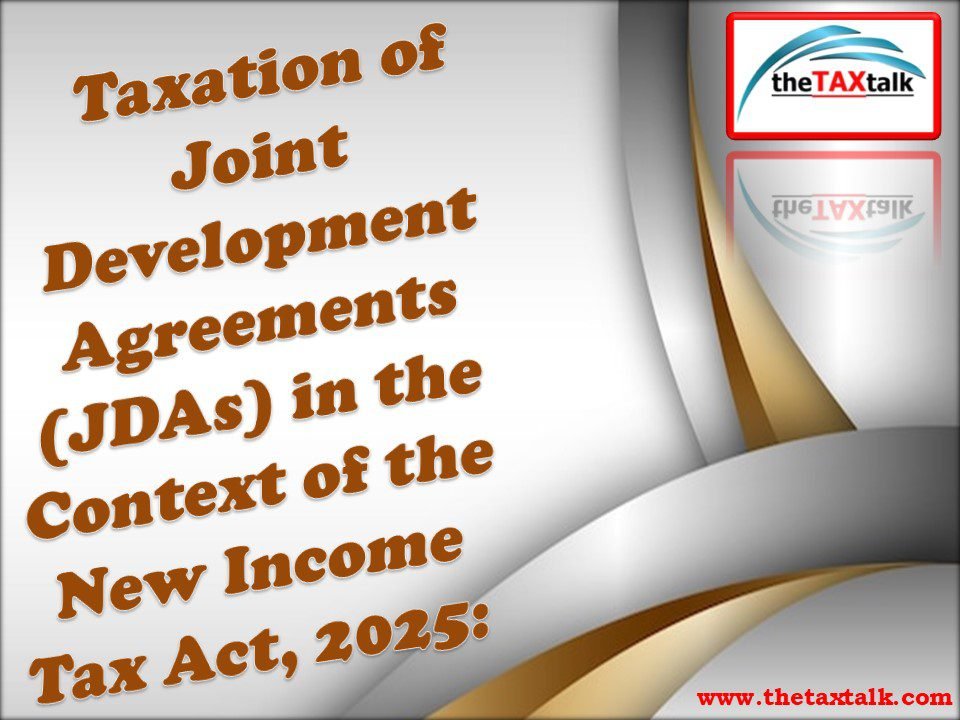 Taxation of Joint Development Agreements (JDAs) in the Context of the New Income Tax Act, 2025: