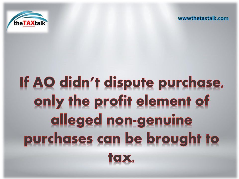If AO didn’t dispute purchase, only the profit element of alleged non-genuine purchases can be brought to tax.
