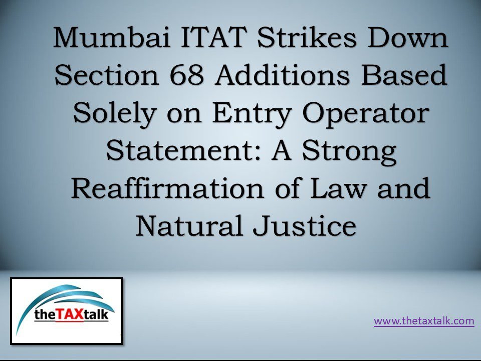 Mumbai ITAT Strikes Down Section 68 Additions Based Solely on Entry Operator Statement: A Strong Reaffirmation of Law and Natural Justice