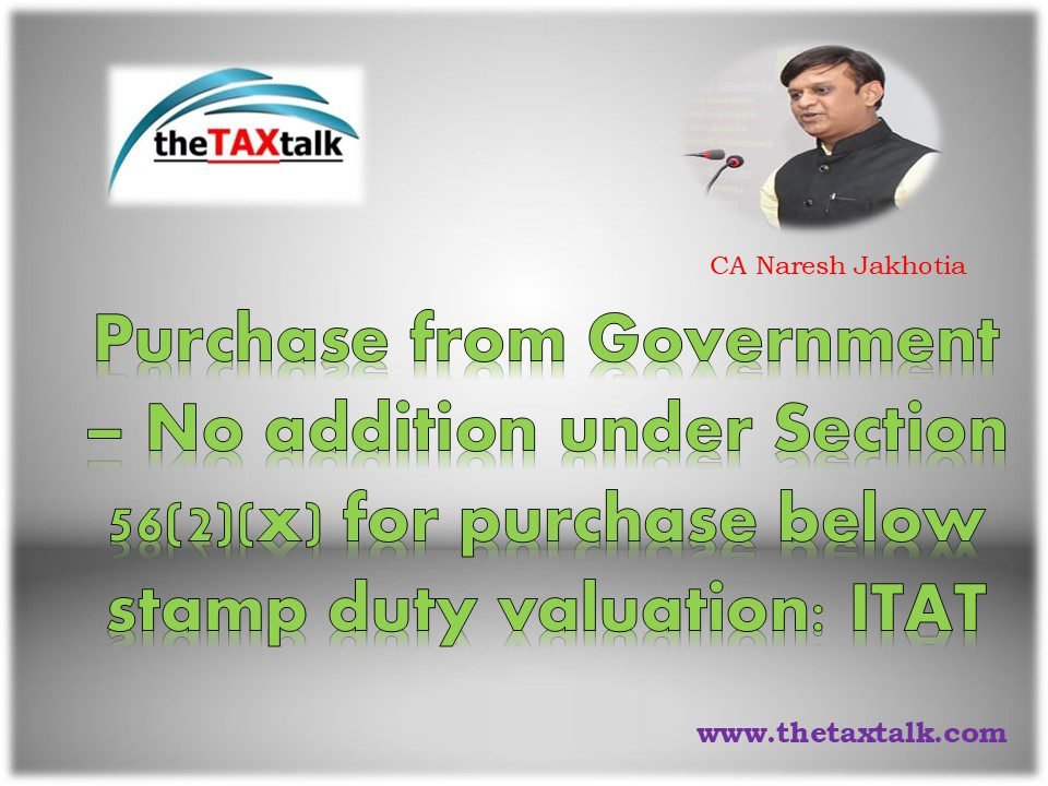 Purchase from Government – No addition under Section 56(2)(x) for purchase below stamp duty valuation: ITAT