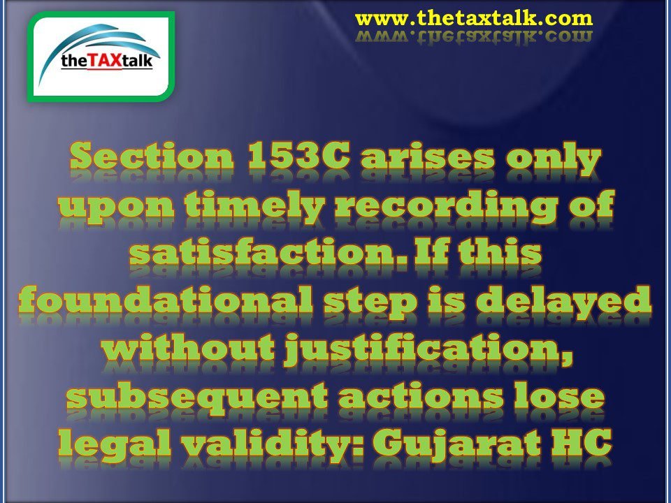 Section 153C arises only upon timely recording of satisfaction. If this foundational step is delayed without justification, subsequent actions lose legal validity: Gujarat HC