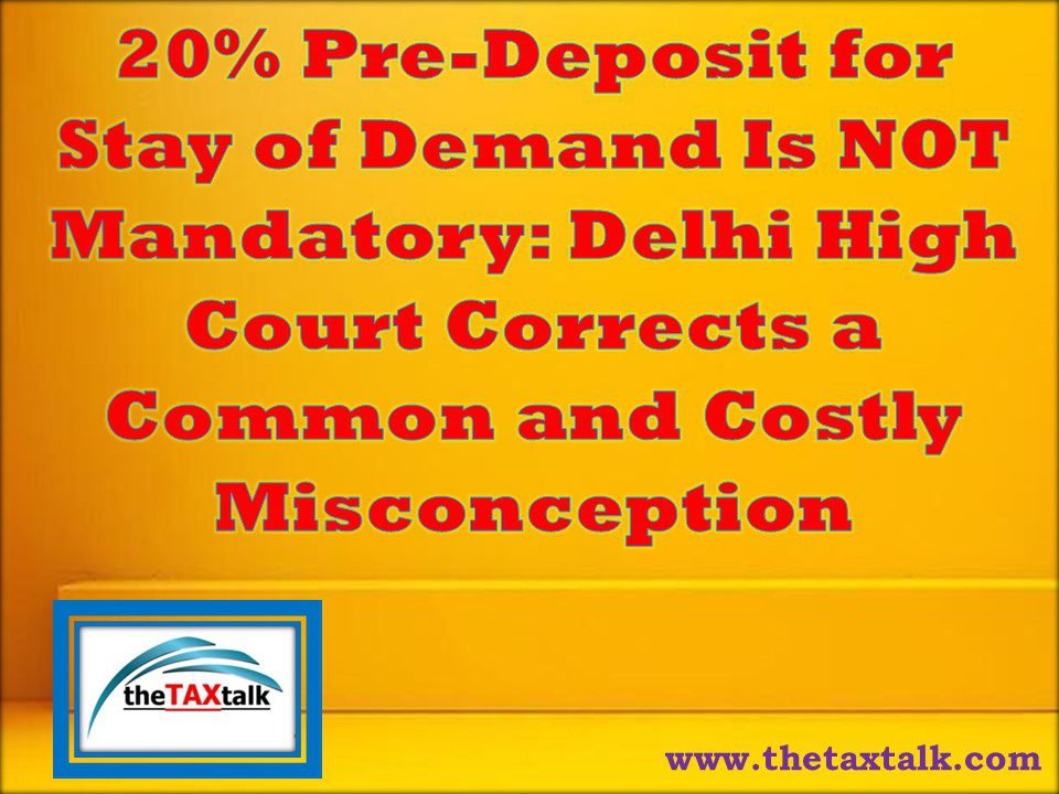 20% Pre-Deposit for Stay of Demand Is NOT Mandatory: Delhi High Court Corrects a Common and Costly Misconception