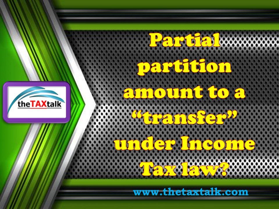 Partial partition doesn’t amount to a “transfer” in law but it can still create tax consequences because of a deeming fiction under the Act.