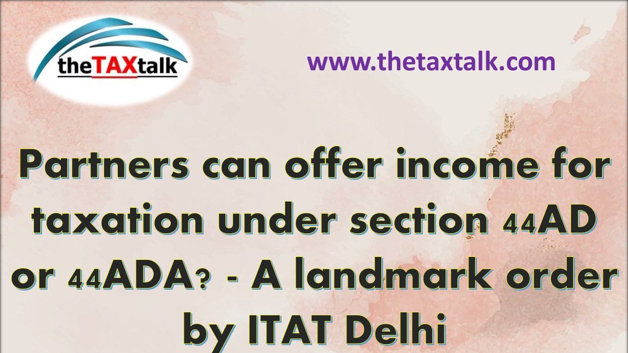 Partners can offer income for taxation under section 44AD or 44ADA? – A landmark order by ITAT Delhi