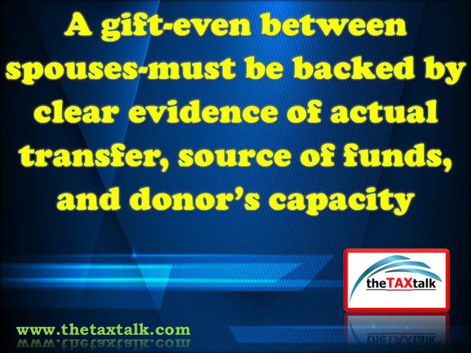A gift-even between spouses-must be backed by clear evidence of actual transfer, source of funds, and donor’s capacity