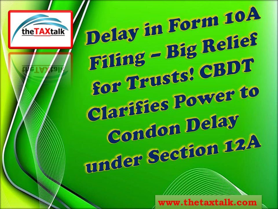 Delay in Form 10A Filing – Big Relief for Trusts! CBDT Clarifies Power to Condon Delay under Section 12A
