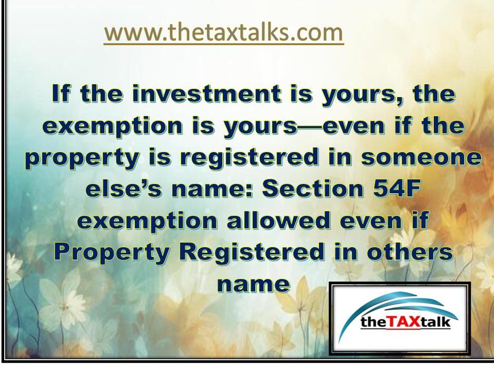 If the investment is yours, the exemption is yours—even if the property is registered in someone else’s name: Section 54F exemption allowed even if Property Registered in others name