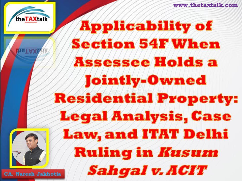 Applicability of Section 54F When Assessee Holds a Jointly-Owned Residential Property: Legal Analysis, Case Law, and ITAT Delhi Ruling in Kusum Sahgal v. ACIT