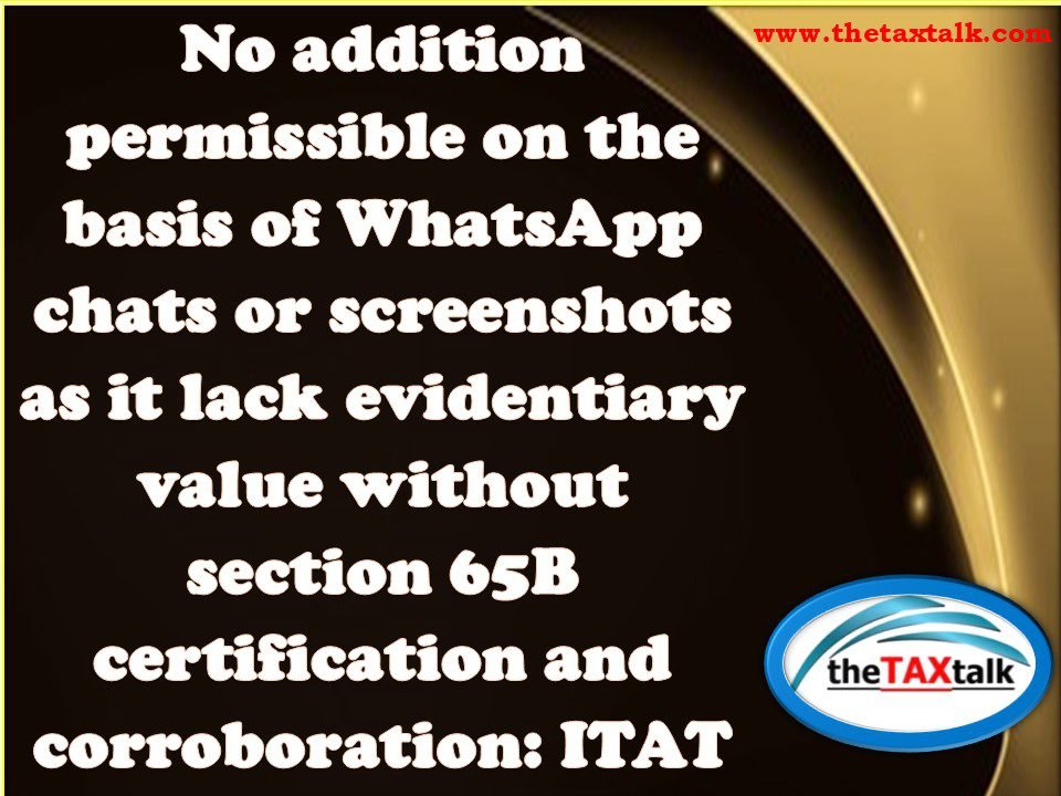 No addition permissible on the basis of WhatsApp chats or screenshots as it lack evidentiary value without section 65B certification and corroboration: ITAT